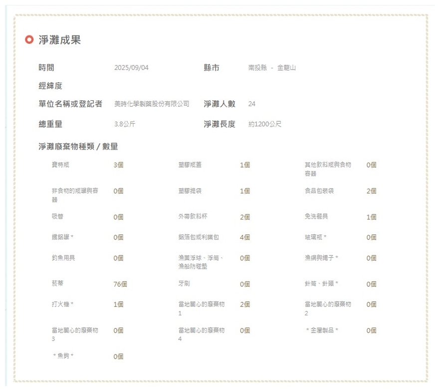 活動最後,大家將撿拾的垃圾分類記錄,完成環境數據登錄。